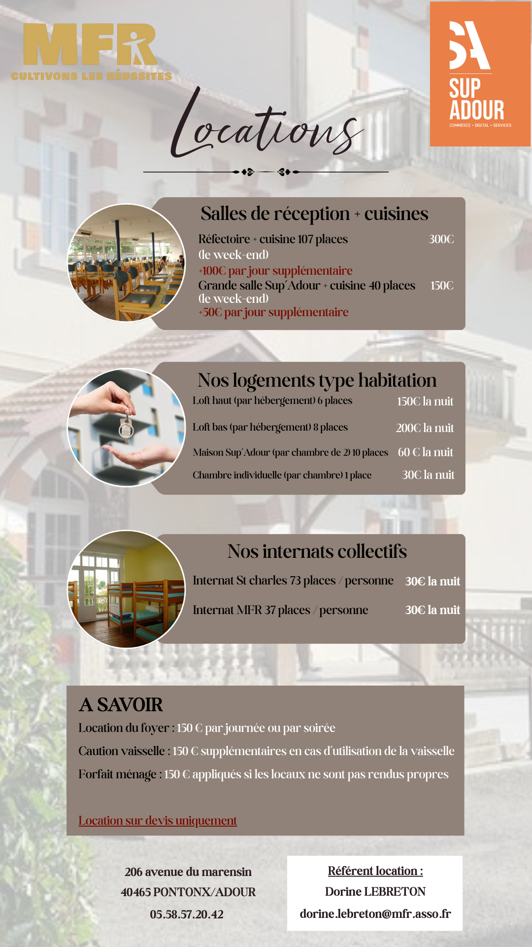 LA MFR VOUS PROPOSE DES LOCATIONS TEMPORAIRES POUR L'HEBERGEMENT DE GROUPES